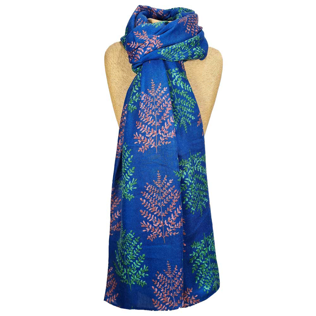 A lovely soft, slightly heavier-weight printed scarf with contrasting colourful leaves.