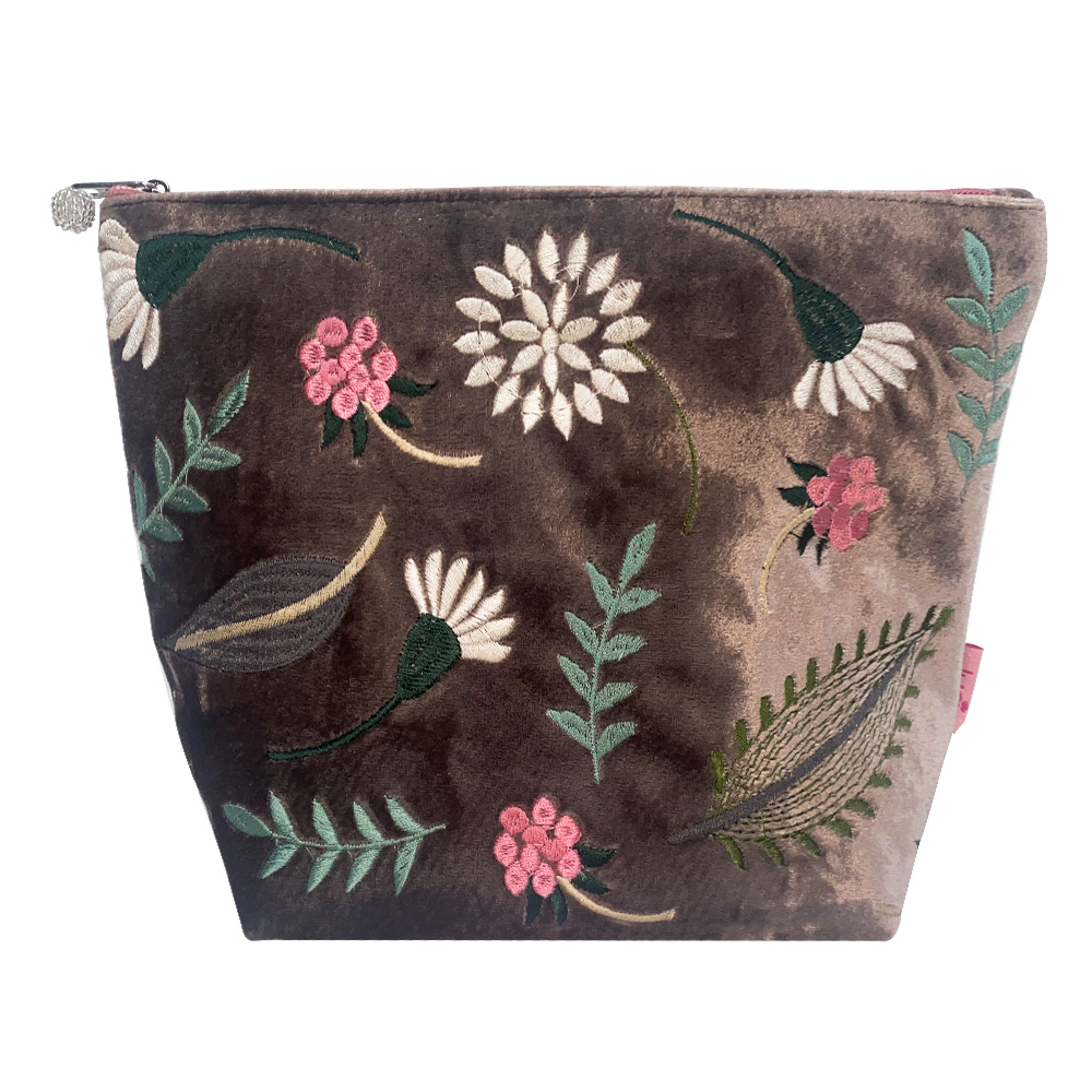 Velvet Folk Flowers Large Cosmetic Bag – Mink